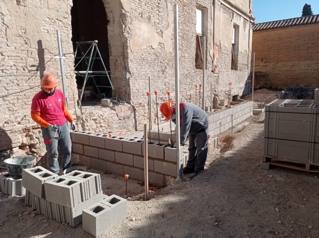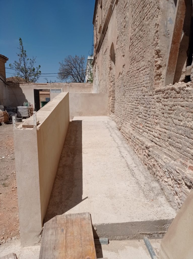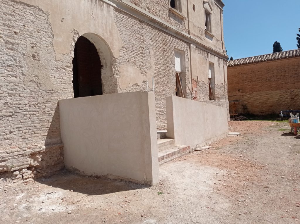 La dirección técnica ha decidido posponer la decisión de los finales de la rampa escalera de acceso a las que se tomarán en conjunto con las obras planteadas en las actuales oficinas del cementerio. Por lo tanto, a falta de las albardillas y del revestido final, tenemos ya casi finalizada la escalera.