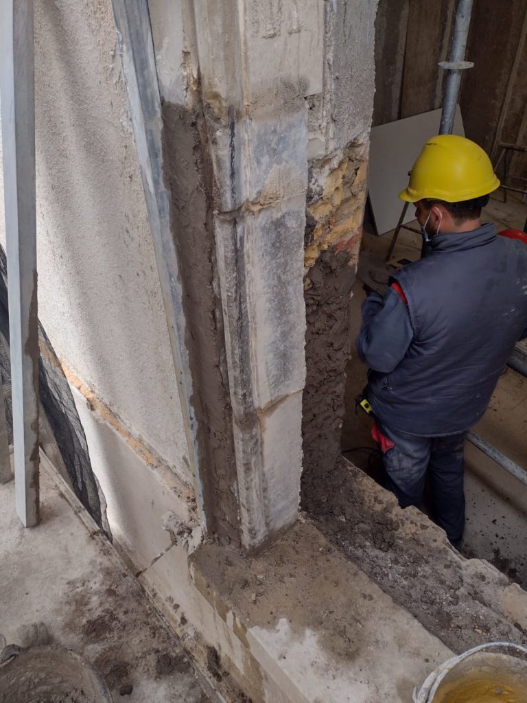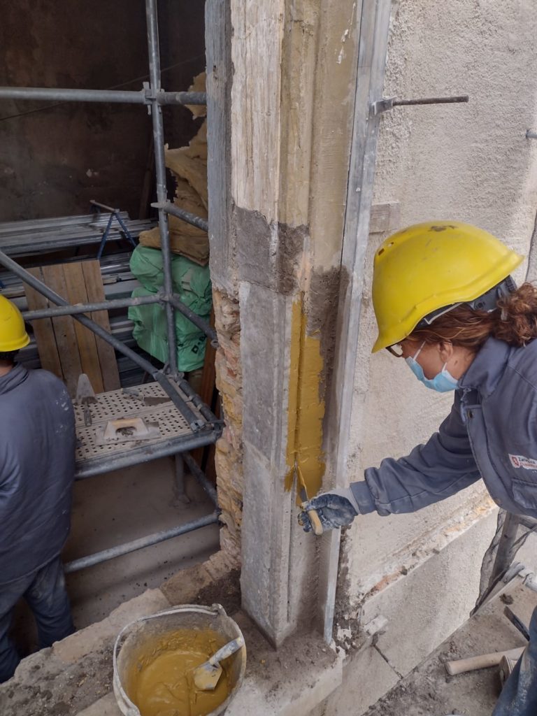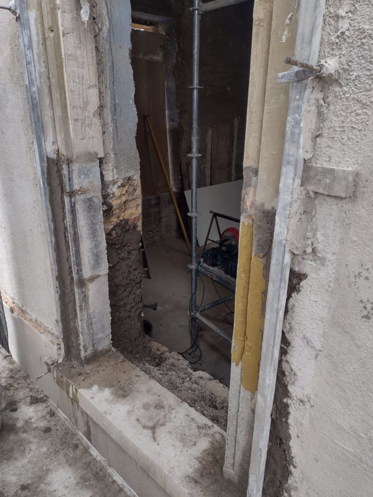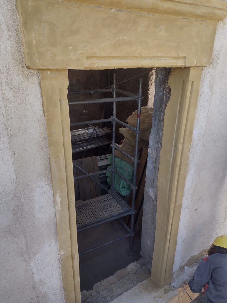 Un aspecto importante de los trabajos en la fachada está siendo los rasgados de las ventanas y la construcción de las molduras que tienen que completar los nuevos huecos.