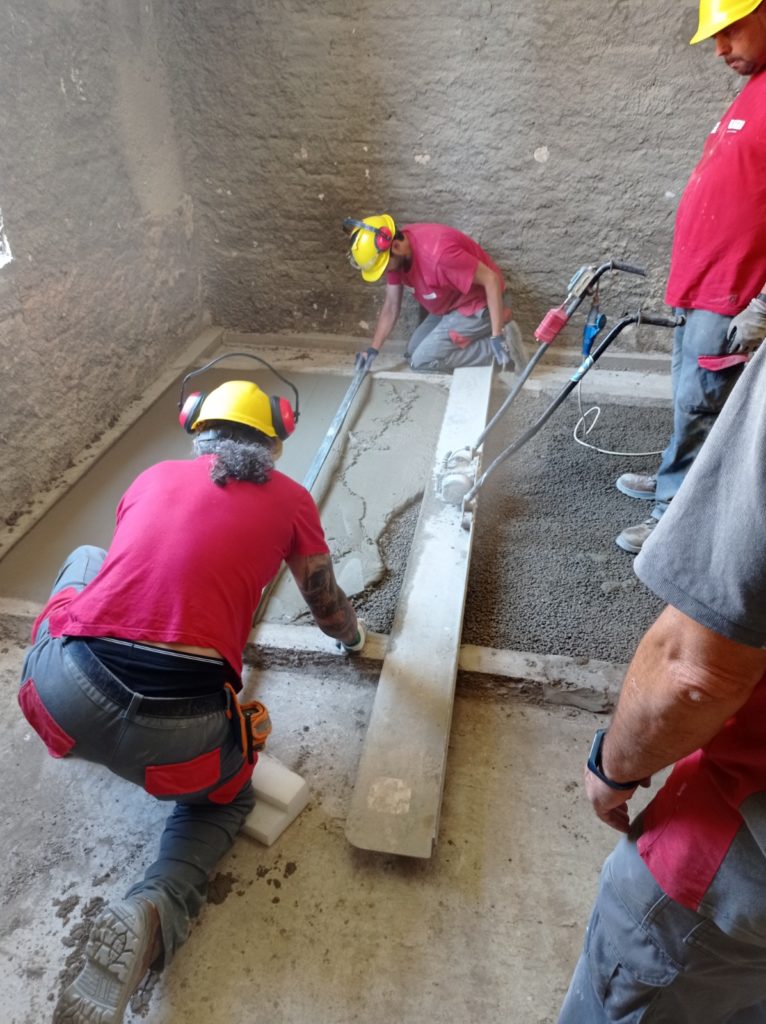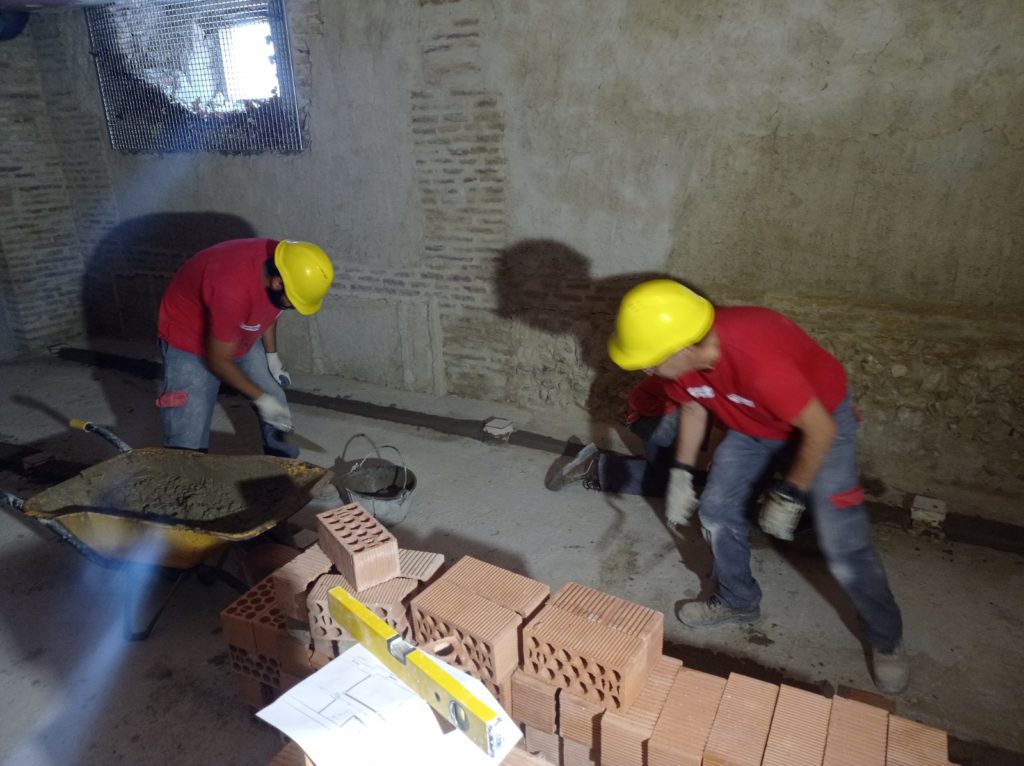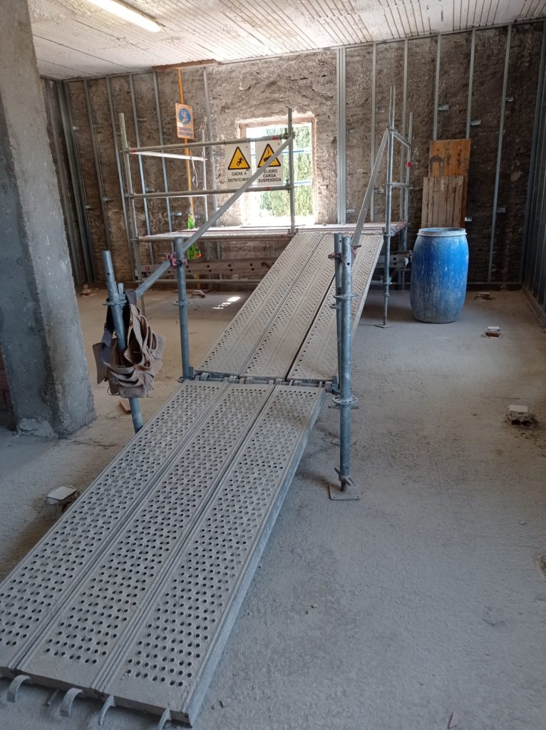 Por otro lado se han comenzado la continuación de los trabajos en el interior del edificio, donde se pretende avanzar en los trabajos de soleras y solados, terminar con las divisiones interiores y algunas otras cosas que irán definiendo los usos del edificio.
